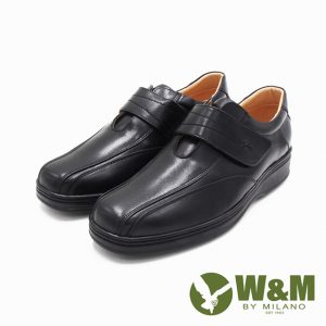 WM男氣墊感厚底增高黏扣帶皮鞋-男鞋-黑