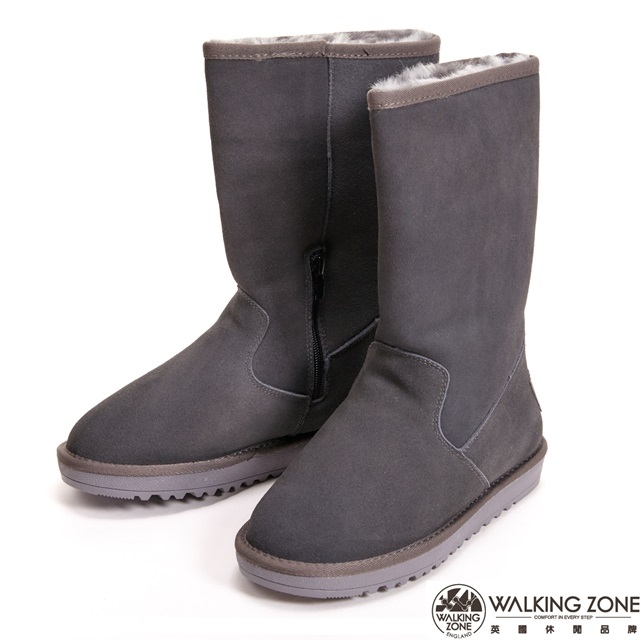 【WALKING-ZONE】暖暖內刷毛拉鍊造型高筒-女雪靴-灰另有深咖