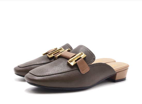 PQ女方頭羊皮H飾低跟穆勒鞋-拖鞋-墨綠色另有米白色