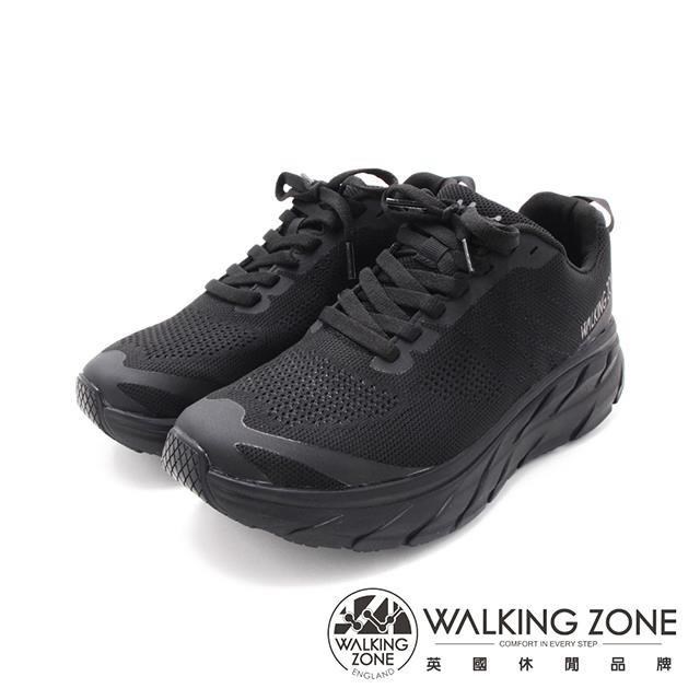 WALKING-ZONE男透氣飛織增高彈力厚底休閒鞋-男鞋-黑另有白