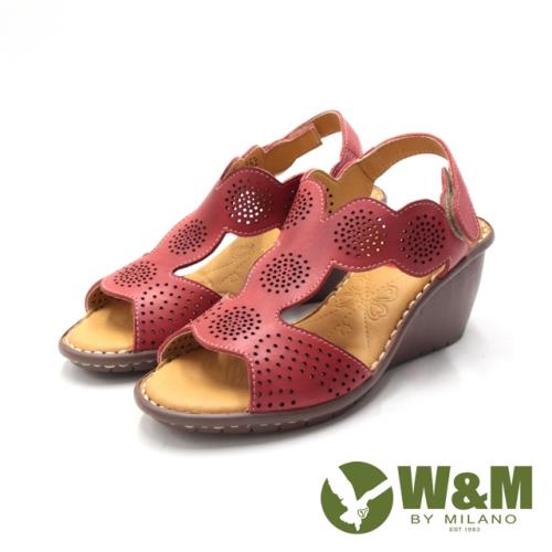 WM-女復古風楔型魔鬼氈中跟涼鞋-紅另有藍