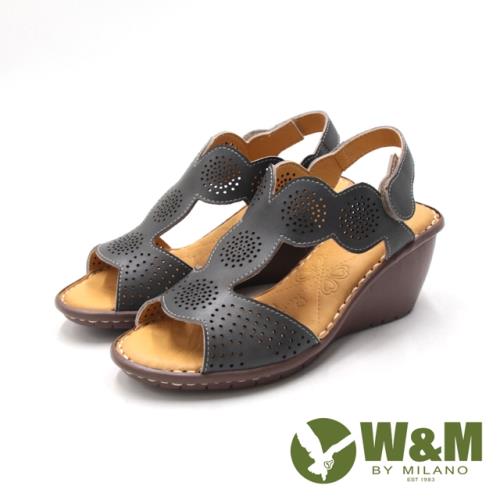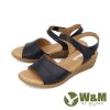 WM-女復古風楔型魔鬼氈中跟涼鞋-藍另有紅